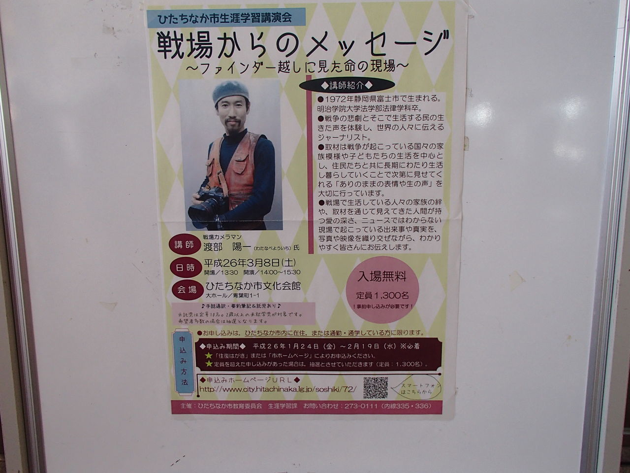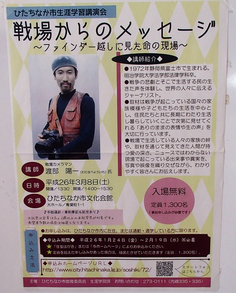 先週の土曜日は、戦場カメラマンこと渡部陽一さんの講演会を聞きに行きました。