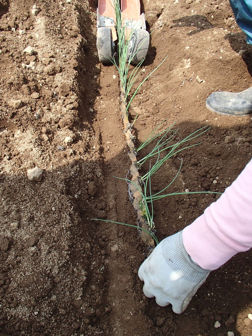 次は、ネギですね。ネギは、専用の耕耘機で穴を掘って、ひっぱり君とかいう大発明品で、ポチポチと植えます。これは、初心者の私でも行けそうです~(☆゚∀゚)とにかく、ひっぱり君と専用の耕耘機で、さくさくと行けるのです。あとは、病気にならないように注意することでしょうねぇ。。。美味しいネギが出来るといいね!!