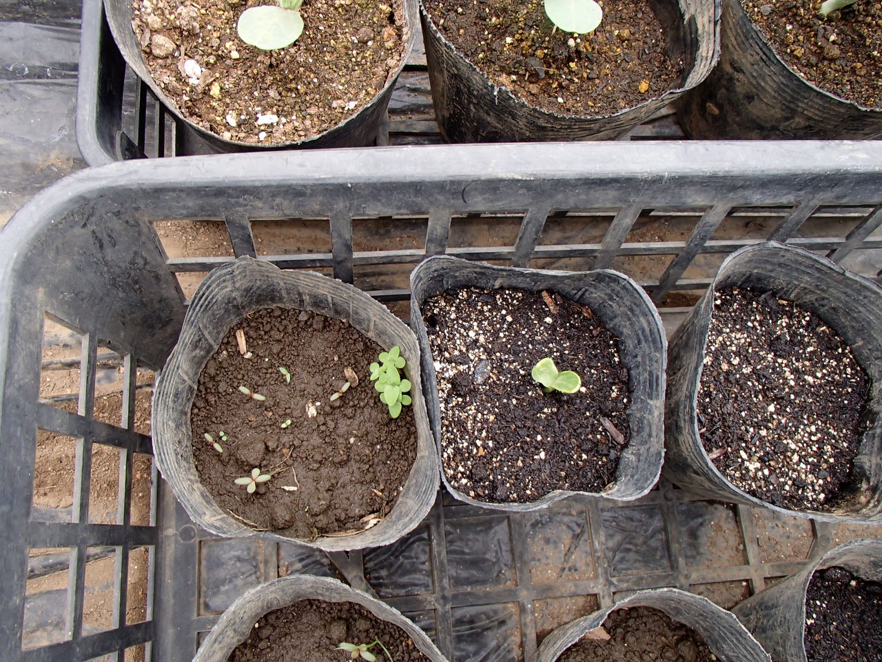 スイカの芽が出ました~真ん中のポッドです。他は出てないですね。