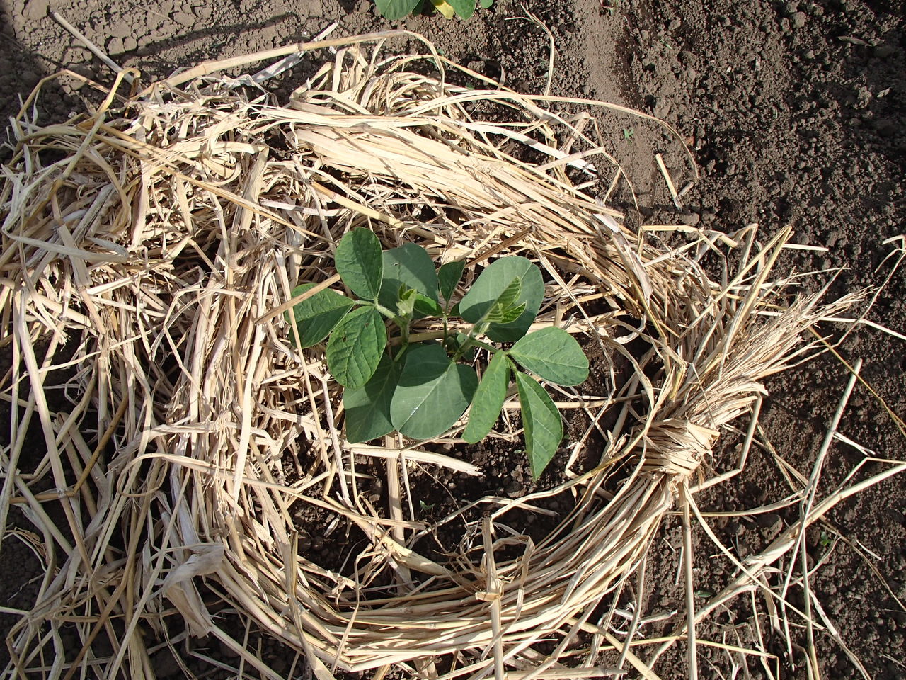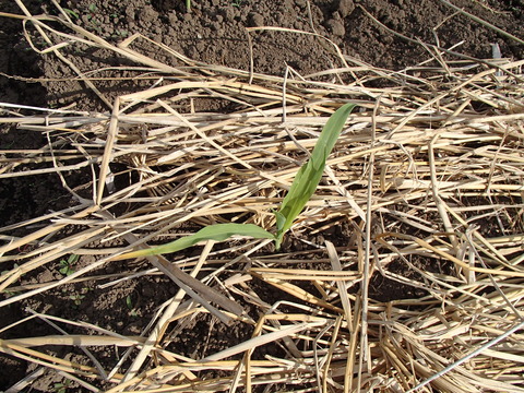 そして、水曜日最後に、トウモロコシと枝豆に藁を置いてみました。