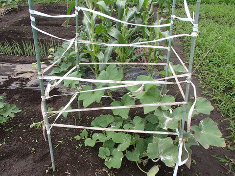 そして、カボチャの誘引のひもが先日切られてしまったので、何とか、直しました~
