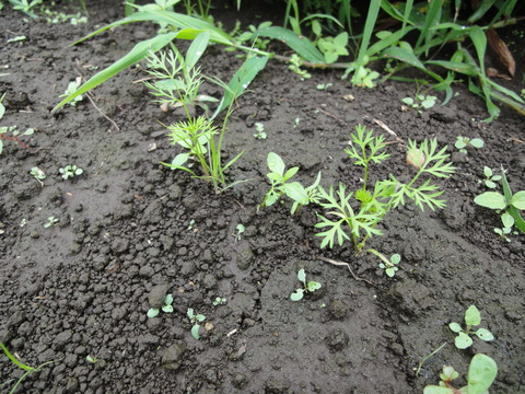 次に、人参の芽が出ています。若干、片側サイドが、芽が出ていないです。発芽率は、7割くらいでしょうか。可愛い芽ですね。大きいおいしいニンジンにんな~れ。( ´_ゝ`)ノ