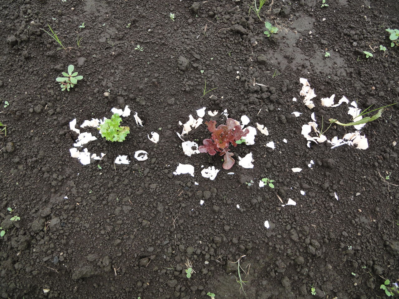 まず、リーフレタスにネキリムシが、前回発生したので、ネキリムシが苦手だという卵の殻を周りに入れました。念のためですね。ちなみに、右のネキリムシにやられたリーフレタスは、死にそうです。。。。・゚・(ノД`)