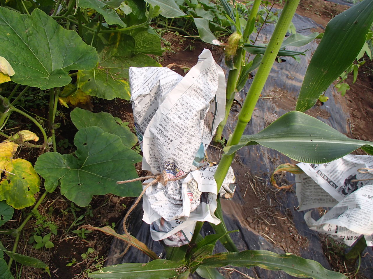 まず、前の日にハクビシンにやられたので、トウモロコシを対策しました。