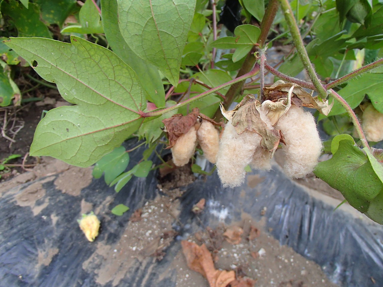 あと、綿を誘引(支えに結ぶこと)していたら、綿が出来ていたことに気づきました!(゚∇゚ ;)エッ!?