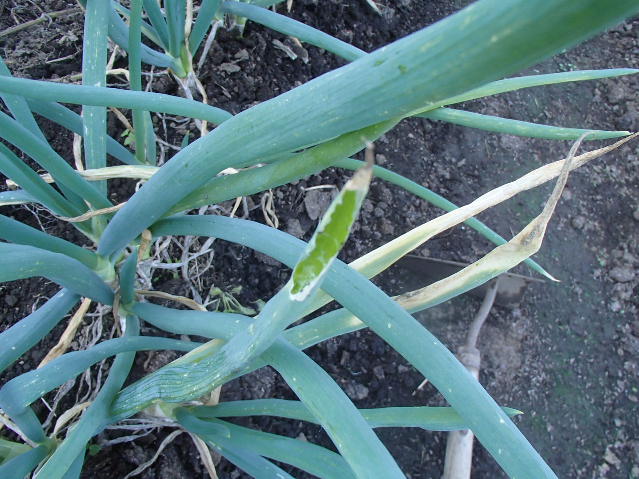 何虫かは分かりませんが、上からネギの葉をブニブニと押さえましたよ。