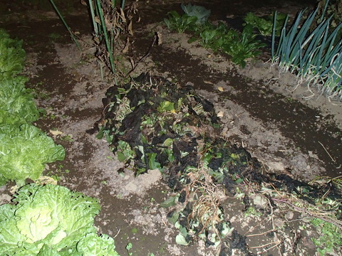 この日の朝霜が降りたためか、サツマイモの葉が枯れていました。(枯れていたと言うより霜でやられていたってことですね)