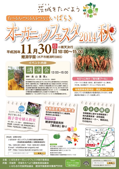 今度の日曜日30日の、オーガニックフェスタ 2014 秋 で野菜販売の手伝いをする予定です。