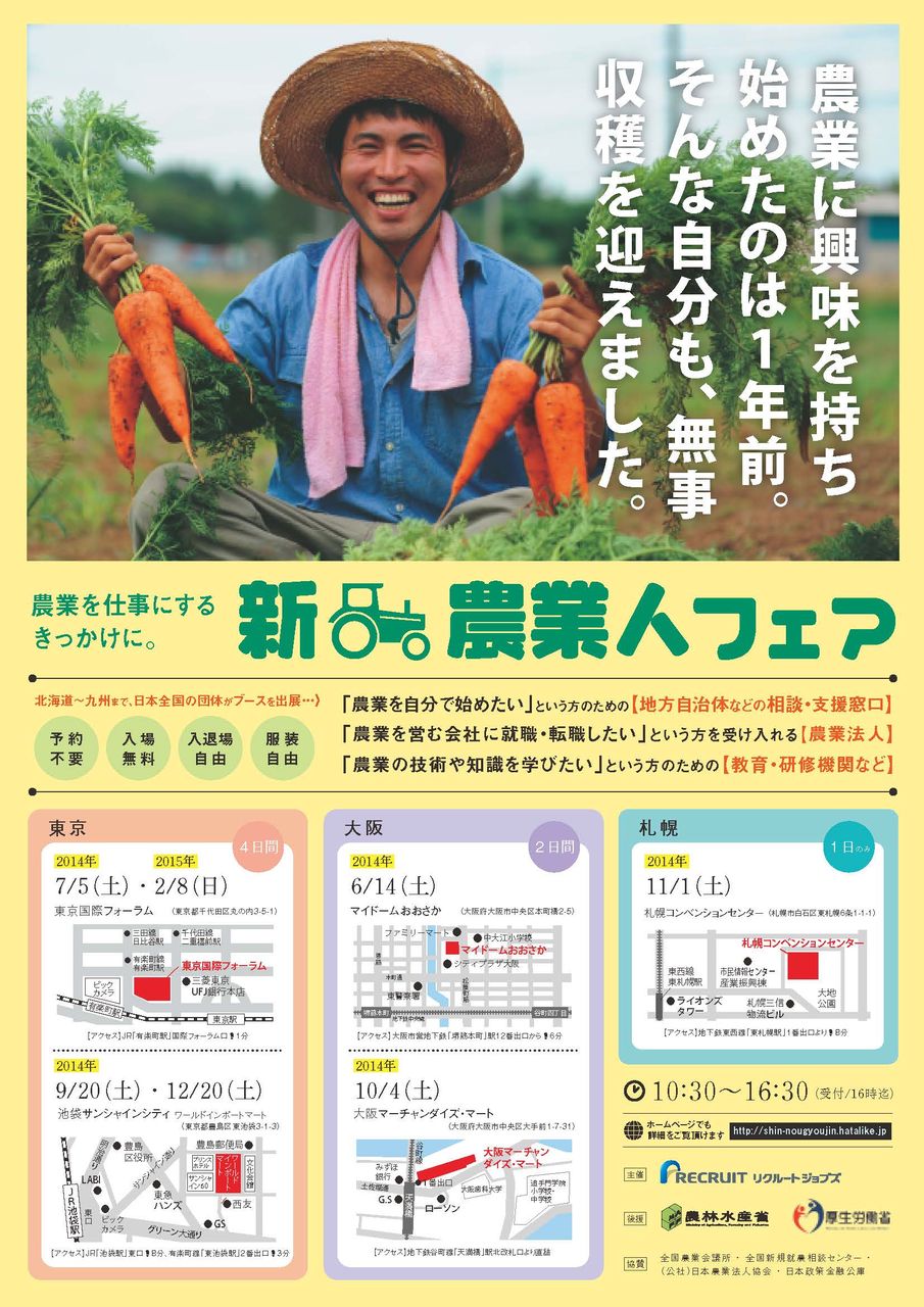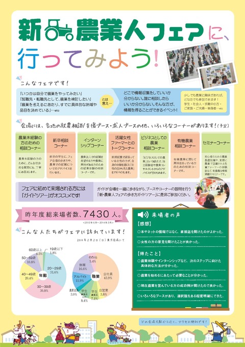 今度の新農業人フェアは、来年2015年2月8日(日)だそうですね。