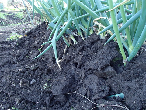 成長点(ネギの葉が分岐するところ)限界いっぱいまで土寄せしました。 本当は、ネギは、成長点以上は、土を寄せてはいけないそうですが、凍って倒れてしまっては、ネギがダメになってしまいます。