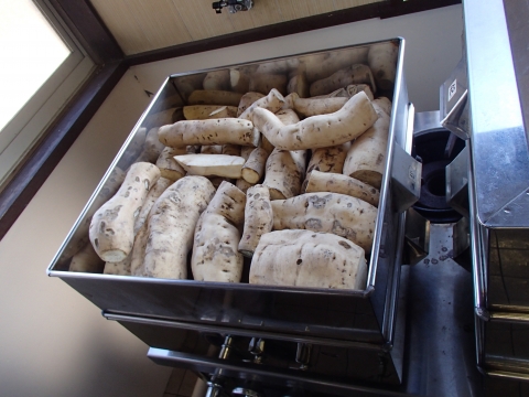 タマユタカは、白い色のイモです。干しイモ専門のイモだそうです。タマユタカは、さらっとした干しイモが出来るようですよ。