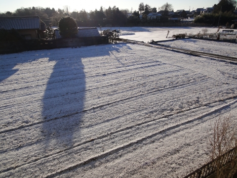今回の冬で、始めて雪が積もりましたよ。昨年の雪では、ビニールハウス(パイプハウス)が、雪の重さで潰れてしまったようですが、今回の雪は、1cm積もったどうかなので、問題は無いです。
