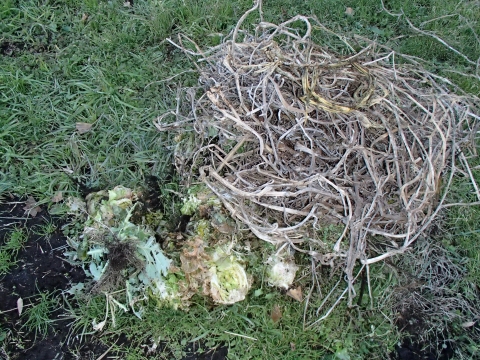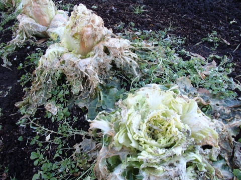 白菜も隣の畑を見ると、大きく結球している白菜は、食べられていないようです。もっと、早めに種まきして、大きく結球させて、出来れば、前の記事の様に室に保存した方が良いですね!
