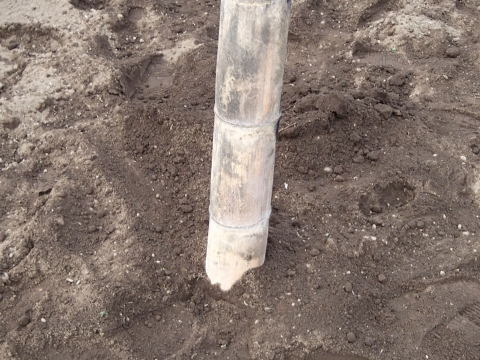 ちょっとこの写真では、板が見えませんが、土の中にあります。
