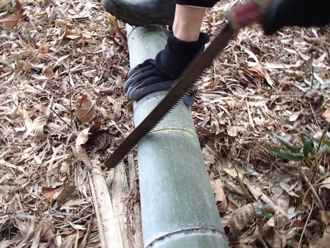 竹の上は、こんな感じで、ヒモで、ガチガチに縛ります。