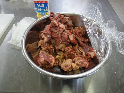 お肉(牛肉バラ)を適当なサイズに切ります。