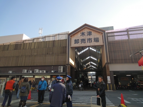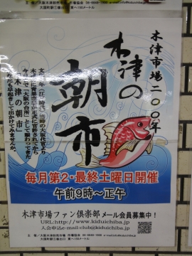 木津市場の朝市の張り紙が早速、駅にありました。市場の雰囲気が感じられます。