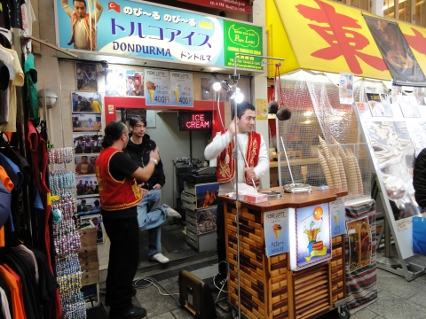 道頓堀の最後にトルコアイスを作っているところがありました。前に大阪に行ったときもあったような気がしますので、好評なのでしょうね。