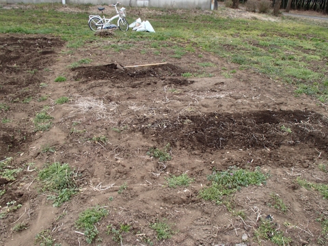 後は、耕耘機やトラクターでうなるだけです。(耕耘する)
