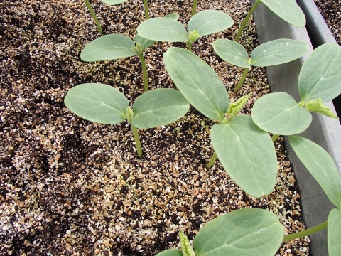 カボチャの種蒔きの1日ぐらい前にキュウリの種蒔きをして早めにキュウリの苗を育てます。