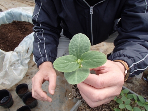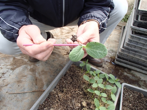 3月16日(月)は、キュウリと台木のカボチャを接ぎ木しました。
