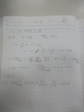 しんしん農園は、0.3aなので、硫安を1.4kg入れれば良いことが分かりました。