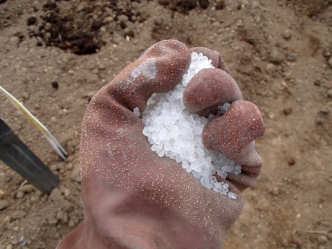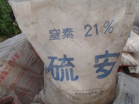 次は、硫安をふりました。前回の記事で、計算したとおり、20つかみ入れました。