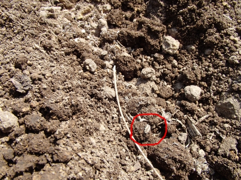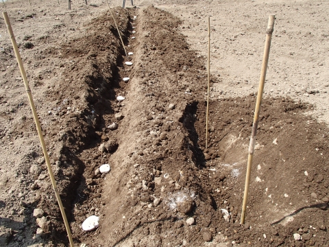 ほんの少しだけ、溝を切って、ほんのちょっとだけ、土をかぶせます。