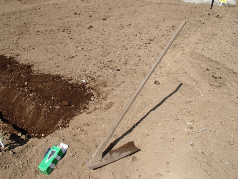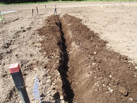まず始めに、ジャガイモを植えるための溝を切りました。