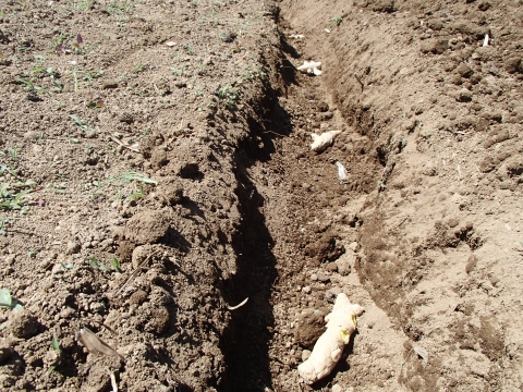 最後に短めの自然薯(短形自然薯)をやろうかなと思いまして、30~40cmの穴を掘りました。