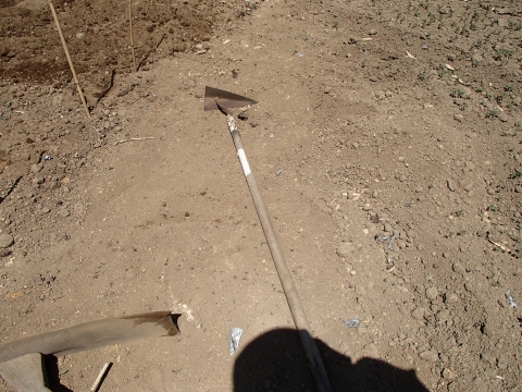 次に、ちょっと草が生えていたので、恒例の三角ホーでガリガリと草を退治します。