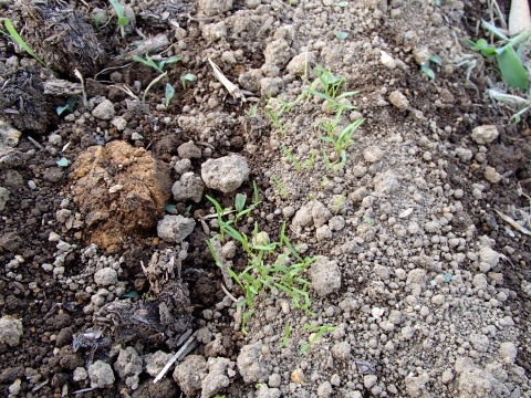 一時、3週間ぐらい雨が降らず芽が出てこなくて、どうなるかと思いましたが、最近の雨で少しずつ芽が出てきたようです。