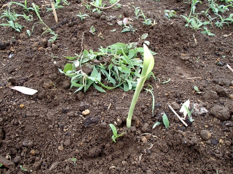 ウコンの芽はなかなか出ないので、種イモが腐ってなくなってしまったか。。。 (゚⊿゚)