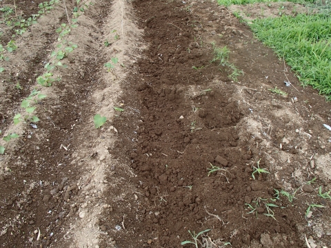 その隣の落花生のあたりは、草が生えていたので、草を取っておきました。
