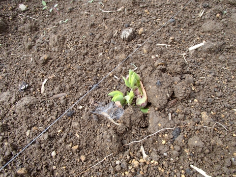 ナカテユタカ(落花生)の芽が出ました~(≧ε≦)可愛い感じで良いですねぇ。ヽ(´▽`)ノ