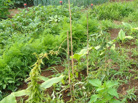 まず、この日は、自然薯の支柱を1、2本立てておきました。自然薯って、ツタのような植物なので這わせないといけないですからね。