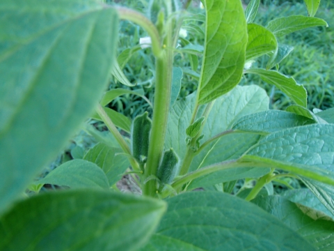 この日にしんしん農園に行ってみたら、ゴマの莢が出来ていました!
