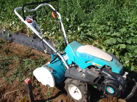 畑の通路の辺りが、草ボーボーでひどかったので、クボタの管理機(ミニ耕耘機)で、うなりました~(耕耘)