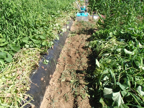 三角ホーなどで地道にガリガリして、草を取っても良いのですが、管理機が早いですからね!(´д`)