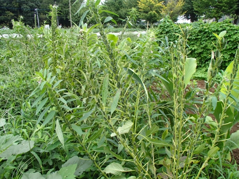 ゴマが、背が高くなって、実もしっかり入ってきたので、収穫をしました。