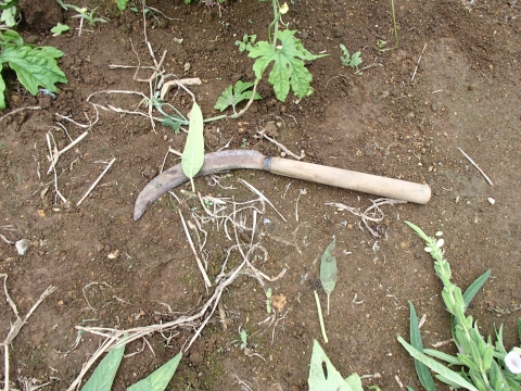 鋸鎌で、ゴリゴリと茎を切っていきました。