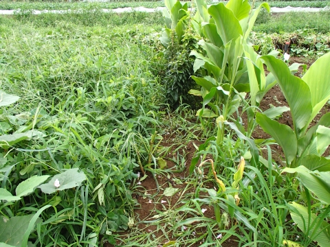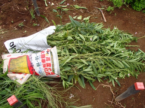背も高く生りすぎて、隣の畑や通路のじゃまになっているようです。(;∀;)