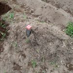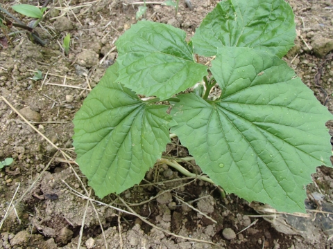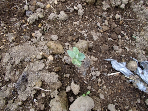まず、以前草堆肥として入れた、ゴーヤから芽が出てしまいましたよ。
