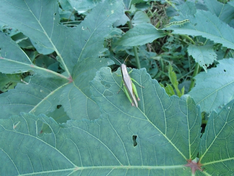 最後に、オクラにバッタさんがいました~