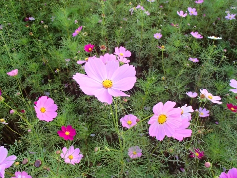 今日、鯉淵学園の帰り歩いていたら、コスモスが満開という感じでした。(ノ)’∀`(ヾ)