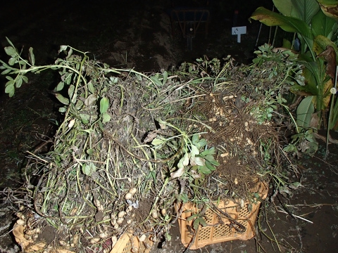 この日は、サツマイモ(シルクスイート)の収穫もしたのですが、ついでに、落花生(千葉半立)の収穫もしました。