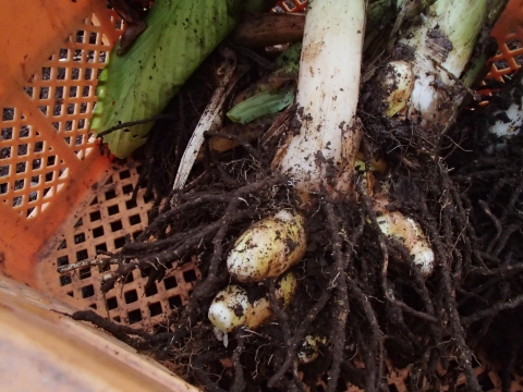 ウコンのイモは、こんな感じです。これから、カレーのスパイスの元や、サプリメントを作るのですね。本当にショウガみたいですよ(∩´∀`)∩