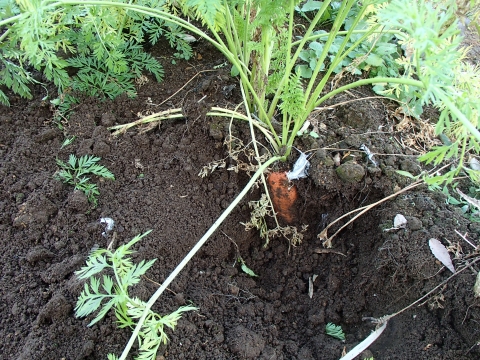 収穫前のニンジンですが、まだ、結構イキイキしていますね!(・∀・)