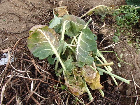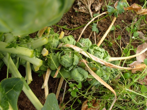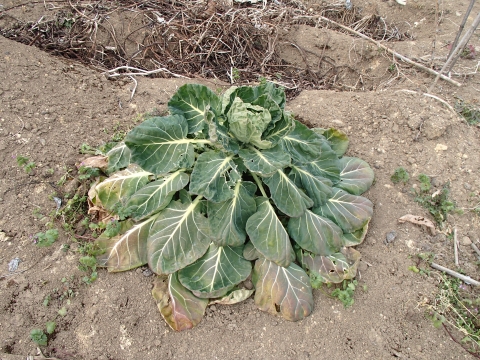 芽キャベツは、上の葉を10枚くらい残して、後は、取った方がよいそうです。
