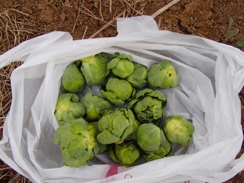 以前の記事で、なんと芽キャベツが育っていたので、この日は、わずかながら収穫しました!ヽ(^ω^)ノ